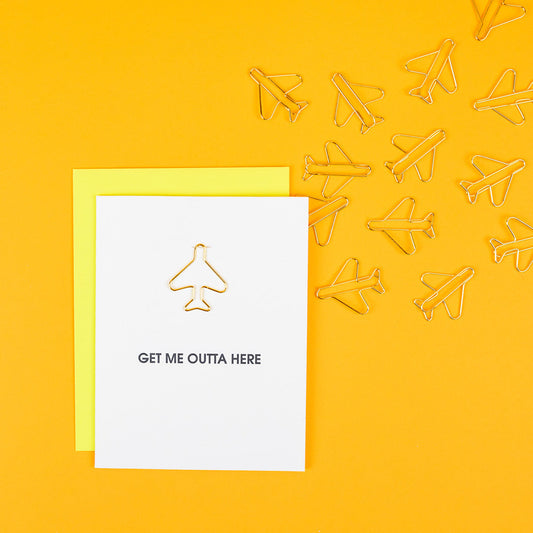 Get Me Outta Here - Airplane Paper Clip Letterpress Card