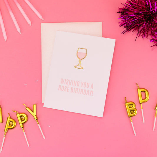 Wishing You a Rosé Birthday - Paper Clip Letterpress Card