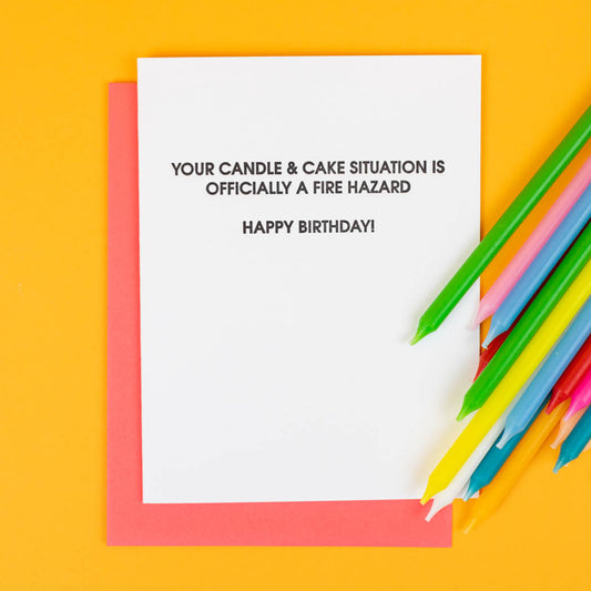 Candle & Cake Situation Is A Fire Hazard - Letterpress Card