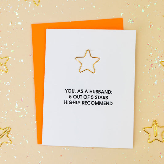 You as a Husband, 5 out of 5 Stars. Highly Recommend - Paper Clip Letterpress Card