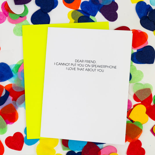 Cannot Put You On Speakerphone - Letterpress Card
