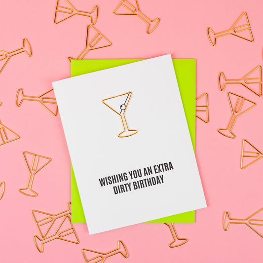 Extra Dirty Martini Birthday - Paper Clip Letterpress Card