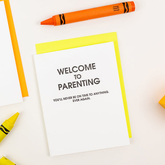 Welcome to Parenting: You'll Never Be On Time to Anything. Ever Again - Letterpress Card