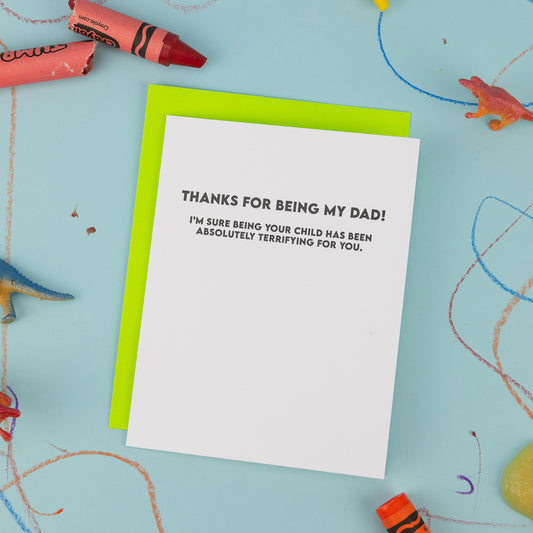 Thanks For Being My Dad - I'm Sure Being Your Child Has Been Absolutely Terrifying For You - Father's Day Card