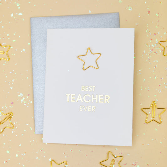 Best Teacher Ever - Star Paper Clip Letterpress Card