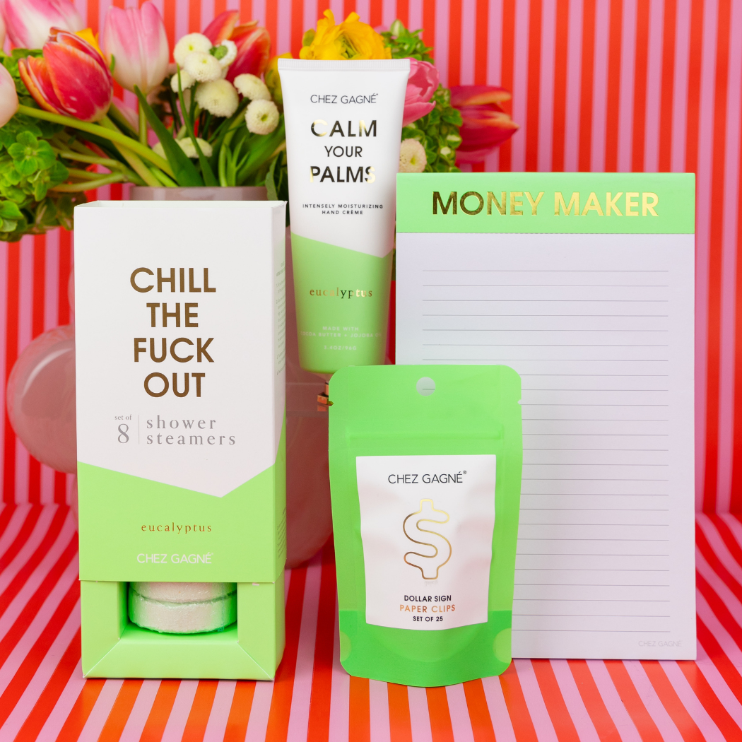 Hand crème, foot crème, journals, and glassware made to feel fancy—but still...