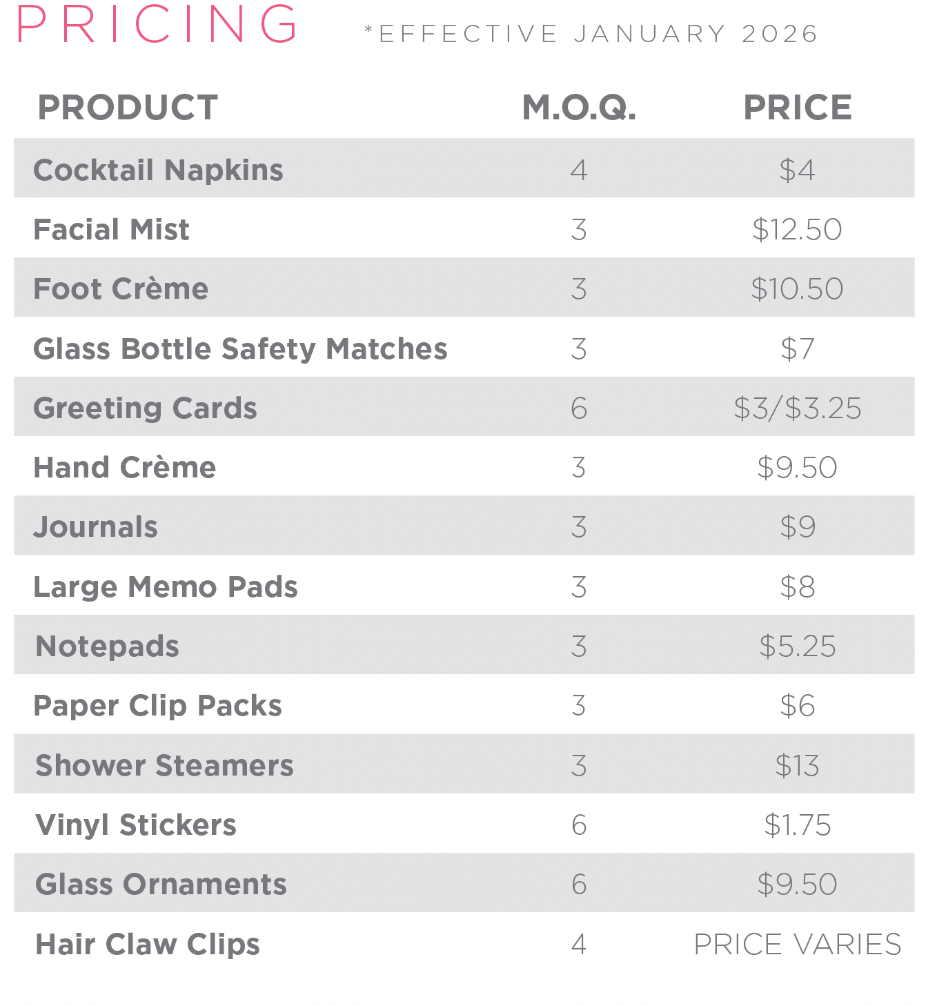 Although our website may allow for modifications, all orders must abide by our MOQs. To avoid delays or order cancellation, please ensure all products meets MOQ requirements.