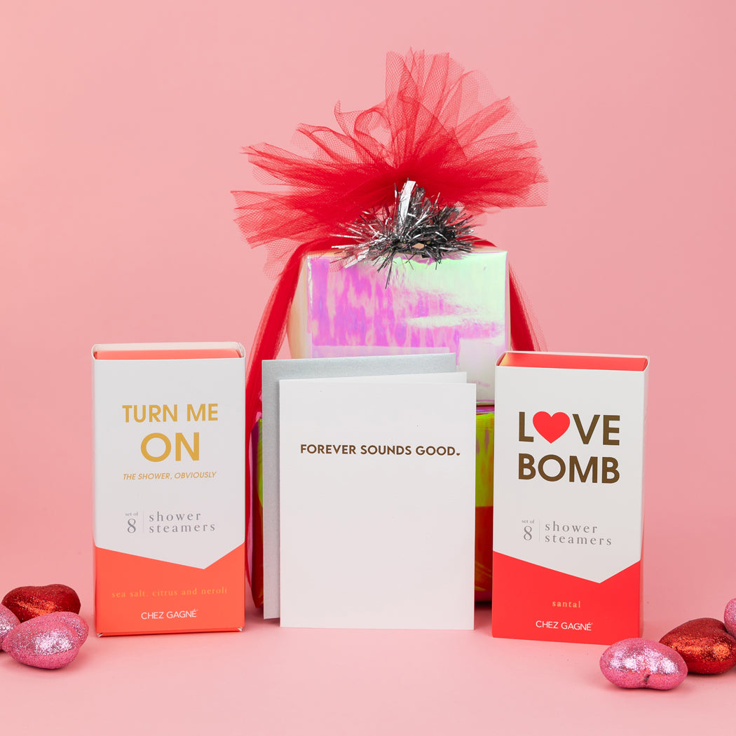 Our “Forever Sounds Good.” card keeps romance simple, modern, and sincere. Letterpress printed with metallic gold foil on luxe tree-free paper, this minimalist favorite pairs with a soft silver envelope for an understated but meaningful moment - perfect for anniversaries, weddings, or telling your person you’re in it for the long haul.