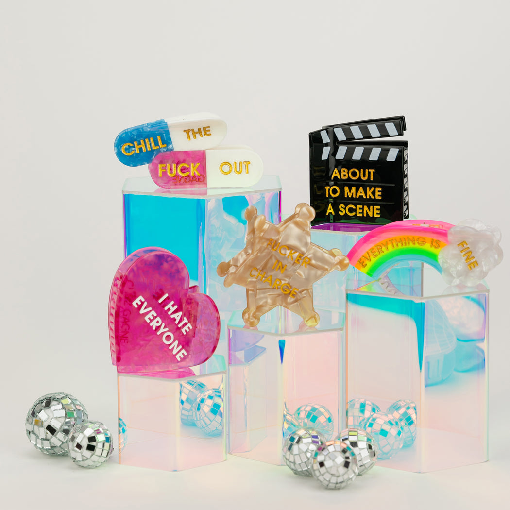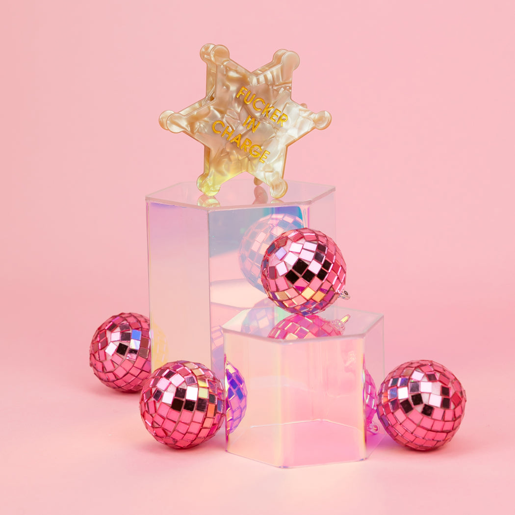 For the days when you’re running the show - or at least pretending convincingly. Our Fucker in Charge acetate hair claw clip turns a classic sheriff’s badge into a power accessory, complete with pearly marbled acetate and bold gold lettering. It’s the perfect way to wrangle your hair and remind everyone who’s calling the shots.