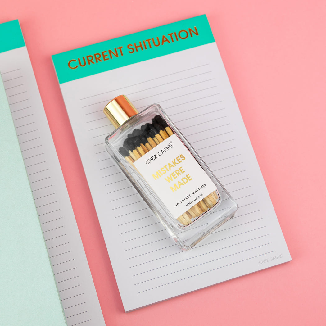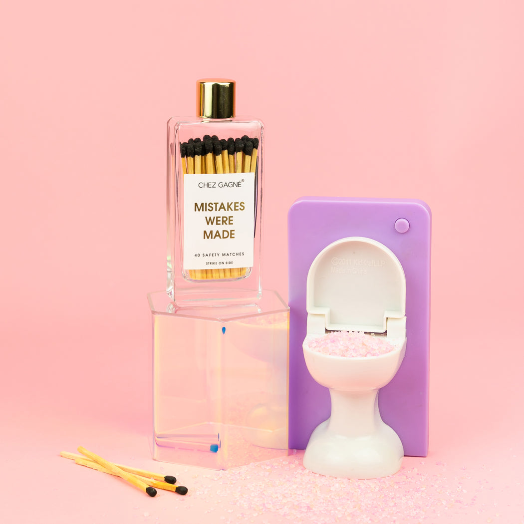 For the moments when the only logical next step is… burn it and start over. Our Mistakes Were Made safety matches bring humor to every “oops,” “my bad,” and “how did that even happen?” With sleek black match tips inside a chic glass bottle topped with a gold lid, they’re the perfect accessory for anyone who handles chaos with comedy (and occasionally fire).